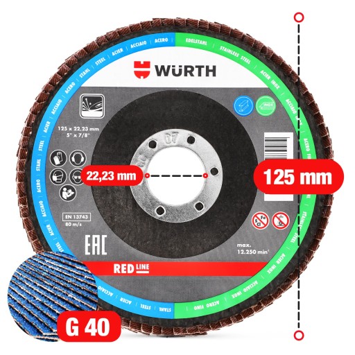 10x Tarcza lamelkowa listkowa RED LINE 125 mm x 22,23 mm G40 WÜRTH