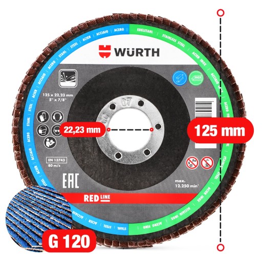 Tarcza lamelkowa listkowa RED LINE 125 mm x 22,23 mm G120 0579580321-K1 WÜRTH