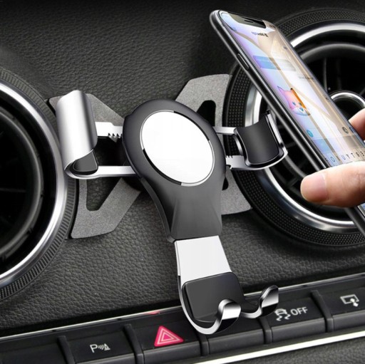 Uchwyt montowany między nawiewami, wykonany z metalu i tworzywa sztucznego. Pasuje na telefonu od 4 do 6 cali ma regulowane ramiona.