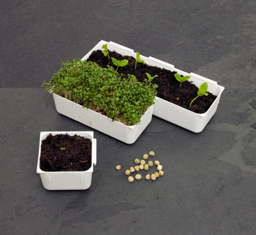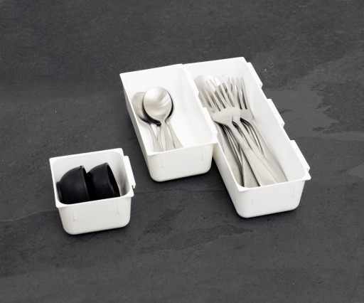 Zestaw modułów do szuflad umożliwia tworzenie własnego systemu przechowywania akcesoriów kuchennych.