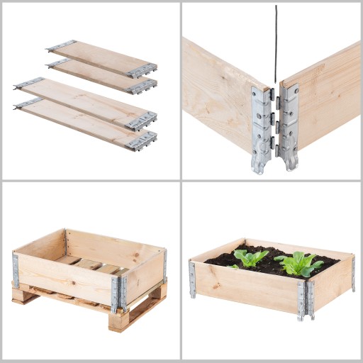 ✅EKOLOGICZNA - oferowane nadstawki paletowe są wykonane z heblowanego drewna iglastego i wyposażone w ocynkowane zanitowane zawiasy, zapewniające długotrwałość użytkowania.