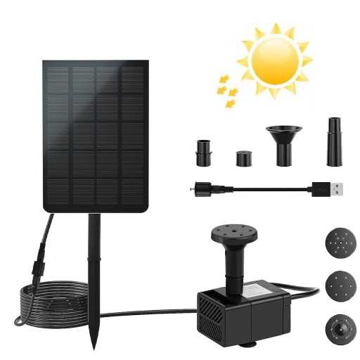 - ☘️Wystarczy umieścić pompę w wodzie, umieścić panel słoneczny na bezpośrednim świetle słonecznym i będzie działać automatycznie. Może być również zasilany przez USB, co skutecznie rozwiązuje problem niskiego strumienia wody przy słabym świetle słonecznym i może być normalnie używany nawet w pochmurne dni.
