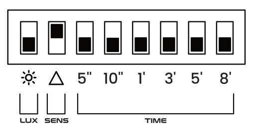 PROGRAMOWANIE CZUJNIKA odbywa się w prosty sposób poprzez wybranie odpowiedniej wartości, przekręcając pokrętłami TIME, LUX oraz SENS