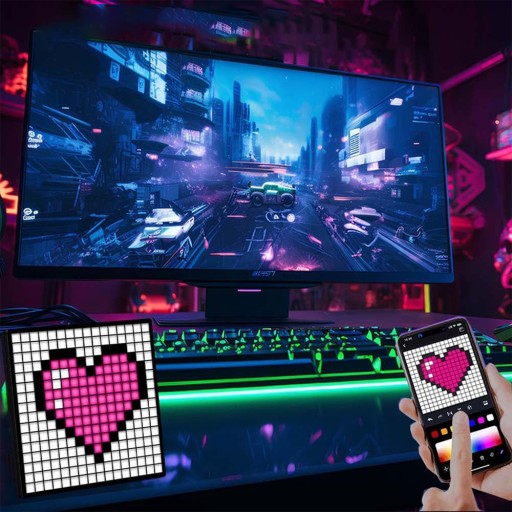 Wyświetlacz pikselowy LED jest wyposażony w wyświetlacz pikselowy LED o wysokiej rozdzielczości 16x16. Posiada oświetlenie RGB z 16 milionami kolorów. Można go używać do listwy świetlnej RGB, akcesoriów do biurek do gier, cyfrowego budzika i innych scen.