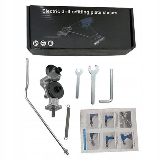 Nasze nożyce do wiertarki elektrycznej są odpowiednie do wiertarki litowej pracującej w zakresie 12-21 V, łatwiejsze i mocniejsze niż zwykłe nożyce i noże. W zestawie znajdują się adaptery, które można dostosować do wielu różnych wiertarek elektrycznych.