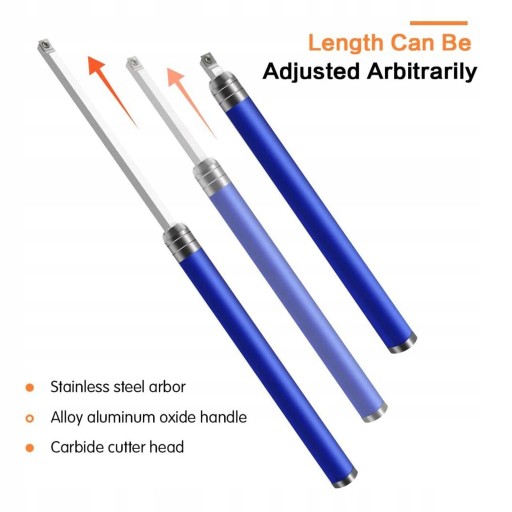 : zawiera narzędzia do toczenia drewna (mini finiszer/grubszy/ ), z węglików spiekanych i imbusowy Trzpień ze nierdzewnej, rękojeść ze tlenku glinu, węglikowa głowica tnąca Solidny i trwały, łatwy w użyciu, dla entuzjastów obróbki drewna na wszystkich poziomach umiejętności lub majsterkowania Zaprojektowany tak, aby można go było utrzymywać płasko na uchwycie narzędzia poziomie podłogi, urządzenie wykańczające/zgrubne/dokładne bez wysiłku odgarnie ogromne ilości materiału do dowolnego procesu toczenia drewna bez potrzeby ostrzenia Dla wszystkich poziomów umiejętności, entuzjastów obróbki drewna lub majsterkowania