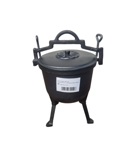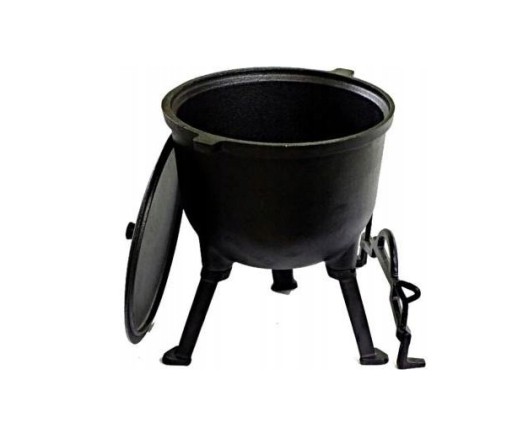 Produkt posiada odkręcane nóżki, przez co kociołek można umieścić w kominku lub bezpośrednio w palenisku.