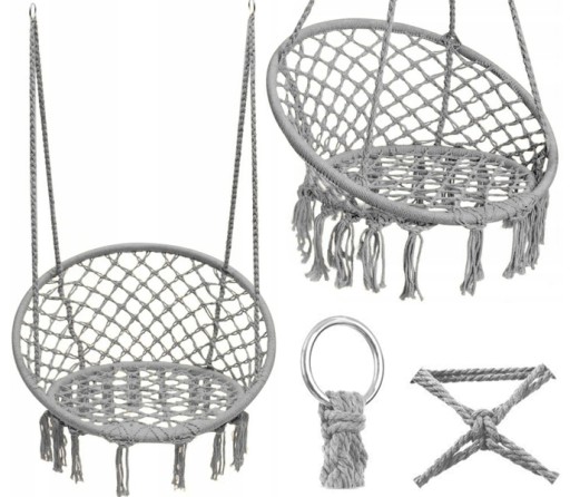 Niebanalny, podwieszany, ażurowy fotel, huśtawka, sprawdzi się jako wyjątkowy mebel w Twoim domu. Można go zawiesić w pomieszczeniu, na tarasie lub ogrodzie. Uatrakcyjni każde wnętrze, ozdobne sploty i frędzle podkreślają nowoczesny design, pozwoli się zrelaksować przy ulubionej książce czy muzyce.