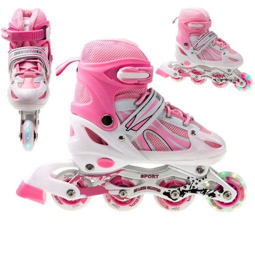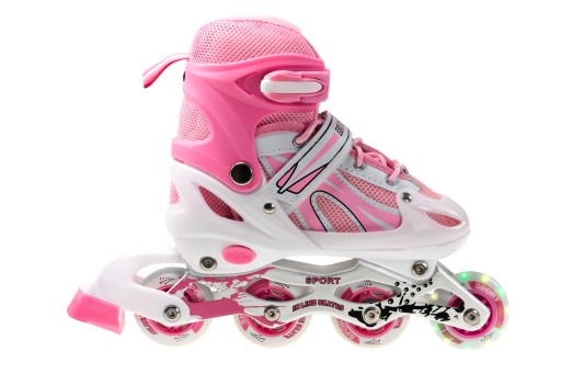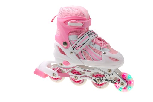 РОЛИКОВЫЕ КОНЬКИ РЕГУЛИРУЕМЫЕ РОЛИКЫ РОЗОВЫЕ КОЛЕСО СВЕТОДИОДНЫЕ КОЛЕСА 34-37