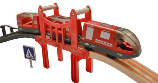 Drewniany Pociąg na Baterie z Zestawem Torów z Wiaduktem