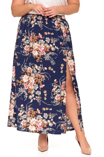 SPÓDNICA MAXI DAMSKA DŁUGA Z ROZCIĘCIEM WZÓR W KWIATY ZWIEWNA MODNA MORAJ M