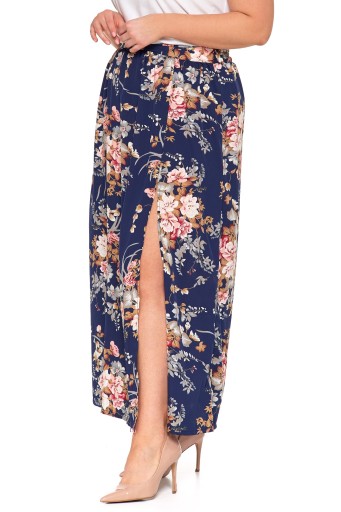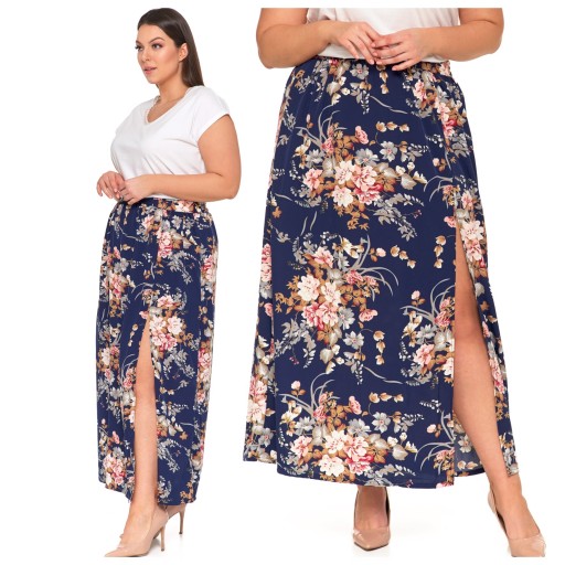 DŁUGA SPÓDNICA DAMSKA MAXI ROZCIĘCIE W KWIATY ELEGANCKA KOBIECA MORAJ XXL