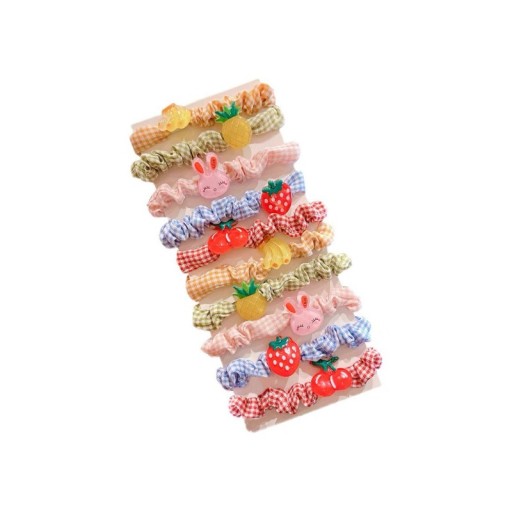 ZESTAW FROTEK / GUMEK DO WŁOSÓW 10 SZTUK - OWOCE I KRÓLICZKI - KOLOROWE