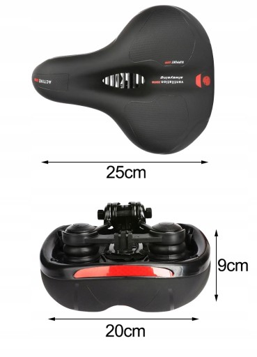 ✅Pod spodem siodełka znajdują się GRUBE sprężyny amortyzujące. Dzięki nim pochłaniane są drgania wywołane jazdą po nierównościach terenu