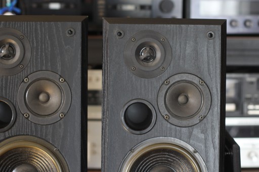 Kolumny głośnikowe T+A Triton R90 wraz z standami .Kolumny w pełni sprawne . Wysoka sprawność oraz dynamika dają świetny dźwięk . Wizualnie w ładnym stanie , drobne obtarcia na krawędziach oraz bokach ( zdjęcia ) , standy na nóżkach poobcierane . Brak jednego logo . Maskownice oraz mocowania całe . Wysokość z standami 50cm . Ze względu na standy wysyłka w dwóch paczkach .