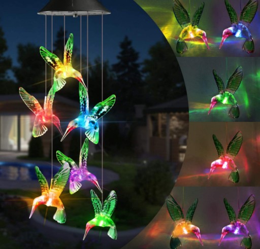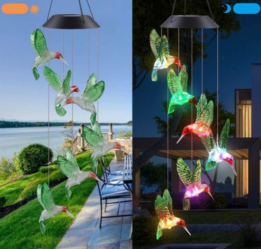 Dzwonki wietrzne KOLIBERKI LED to idealna dekoracja zewnętrzna / wewnętrzna. Idealna ozdoba podwórka, werandy, tarasu, ogrodu, salonu, sypialni jak również sposób na dekorację świąteczną. Dzwonki koliber LED są energooszczędne i przyjazne dla środowiska, panele słoneczne ładują się w ciągu dnia, i są automatycznie włączane w nocy.