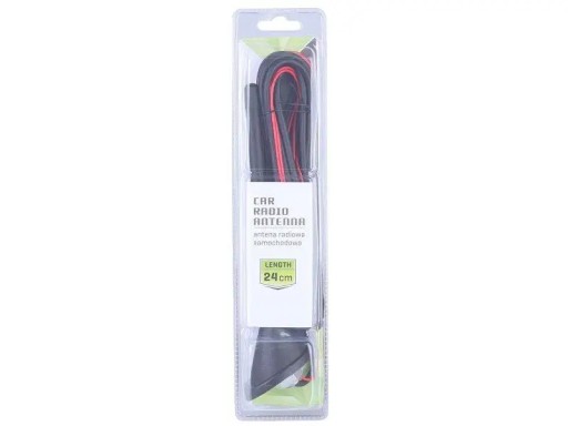 Antena przeznaczona do odbioru sygnału radiowego AM/FM. Antena przystosowana do podłączenia do typowego radia samochodowego z gniazdem antenowym DIN. Dane techniczne:długość gumowego masztu 24cm, długość przewodu 300cm, uszczelka pod anteną zapobiega przedostawaniu się wody do wnętrza auta. Ważne: podczas montażu należy pamiętać, aby czerwony przewód był podłączony do zasilania prądu stałego 12V.