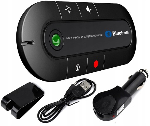 Urządzenie stworzone z myślą o osobach, które często podróżują samochodem. Stosowanie zestawu głośnomówiącego zapewni komfort i bezpieczeństwo podczas prowadzenia rozmów telefonicznych w czasie jazdy samochodem. Zalety stosowania zestawu głośnomówiącego:połączenia wielokanałowe, wysoka jakość dźwięku - mikrofon o wysokiej czułości, automatyczne parowanie i łączenie, mocowany klipsem na osłonie, duże przyciski zapewniające komfort użytkowania. Zestaw zawiera:zestaw głośnomówiący, kabel USB, ładowarka do gniazda zapalniczki, klips do mocowania