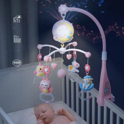 Pozwól swojemu maluszkowi zanurzyć się w słodkim śnie z naszym dzwonkiem do kołyski, który łączy w sobie efekty świetlne, projekcję oraz muzykę. Ten uroczy gadżet nie tylko zapewnia relaksującą muzykę, ale także projekcję kolorowych gwiazdek i obrazków, aby stworzyć idealne środowisko snu dla Twojego dziecka. Łatwy w użyciu i montażu, ten dzwonek do kołyski z pewnością stanie się ulubioną zabawką Twojego maluszka.
