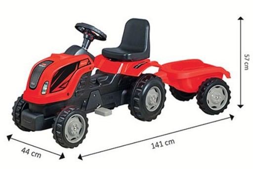 - Wymiary traktorka z przyczepką: 141 x 44 x 57 cm