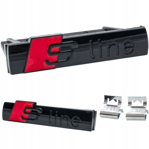 ✅Emblemat do AUDI S-LINE ZESTAW 2x naklejka emblemat grilla - czarny połysk 3D