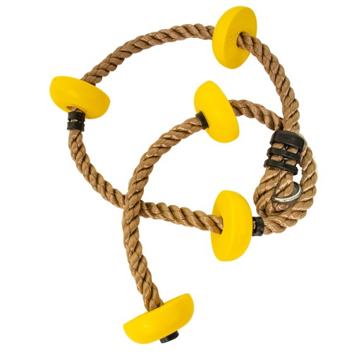 Poszukując produktów do wzbogacenia przydomowego kącika zabaw takich jak akcesoria na place zabaw koniecznie zwróć uwagę na linę wspinaczkową. Żółte uchwyty ułatwiają wspinaczkę dzieciom. Lina wykonana z wysokiej jakości tworzywa, które zapewnia niezwykle wysoką wytrzymałość.