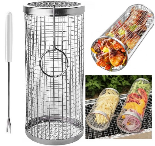 Cylindryczny kosz do grillowania , który umożliwia równomierne krążenie ciepła wokół żywności, a jednocześnie umożliwia łatwe obracanie żywności, aby uzyskać doskonałe efekty grillowania Koszyk pomoże w uzyskaniu chrupiącej skórki i pysznego smaku dla różnych potraw, takich jak frytki, kiełbaski, bekon, warzywa i nie tylko.Rolowany kosz na grilla upraszcza grillowanie i sprawia, że jest bardziej wydajny, umożliwiając gotowanie wielu potraw jednocześnie bez konieczności obracania każdego elementu na grillu.kosz do grillowania ma długość 20cm, co sprawia, że są one odpowiednie do większości rodzajów grilli i rusztów. Dzięki uniwersalnym wymiarom, możesz łatwo dopasować je do swojego urządzenia i cieszyć się wygodnym i efektywnym grillowaniem.