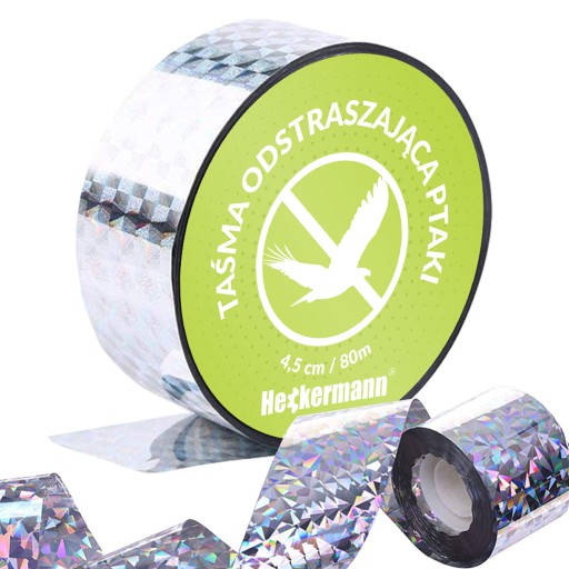 ⭐ Rolka wysokiej jakości taśmy przeciw ptakom posiada aż 80 metrów długości i szerokość równą 4.5 cm.
