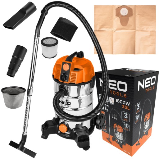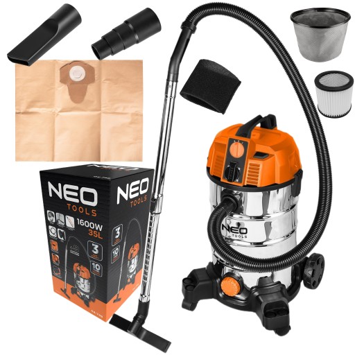 NEO ПРОМЫШЛЕННЫЙ ПЫЛЕСОС 1600ВТ 35Л ВЛАЖНАЯ И СУХАЯ ДЛЯ ШТУКАТУРКИ + АКСЕССУАРЫ