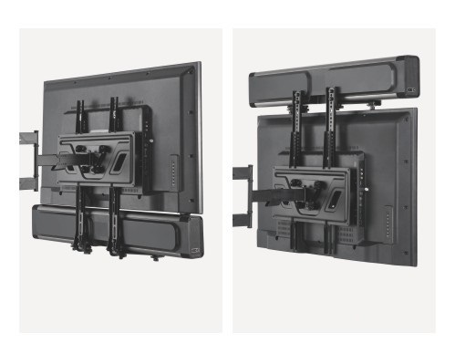 Uchwyt można dostosować do soundbarów o głębokości od 4 do 18,2 cm oraz o szerokości od 50,8 do 114,3 cm.