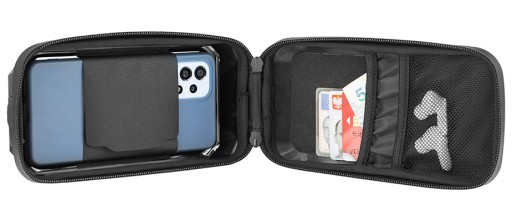 Podwójny zamek błyskawiczny stanowi 100% pewne zabezpieczenie telefonu przed wypadnięciem. Zamek pozwala na szybkie i łatwe wkładanie i wyjmowanie telefonu lub nawigacji z etui. Specjalna konstrukcja stanowi dodatkową ochronę przed wodą.
