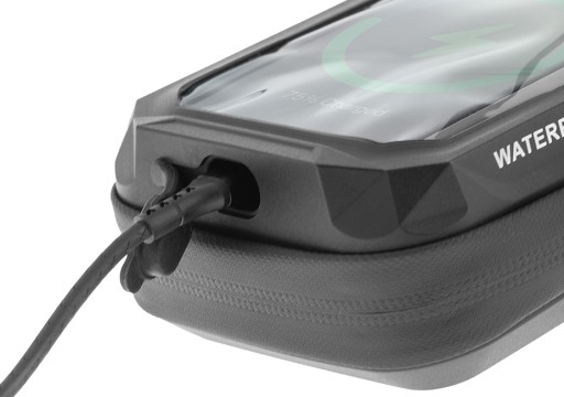 Wyjście na kabel pozwala wygodnie ładować urządzenie wewnątrz etui. Kształt oraz gumowana powierzchnia wyjścia na kabel znacząco zmniejszają ilość wody i brudu, która może dostać się do środka.