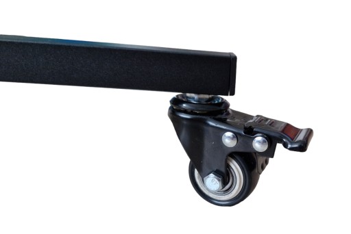 ◇ Statyw wykonany jest głównie z metalu, co gwarantuje jego trwałość i stabilność. Niemetalowe elementy, takie jak uchwyty śrub blokujących położenie sekcji czy kółka, są również solidnie wykonane.