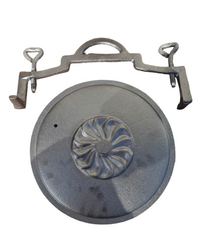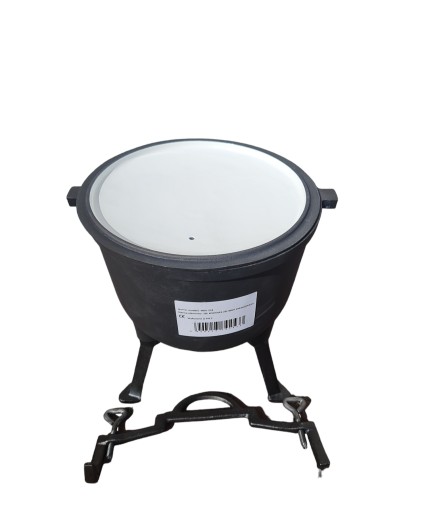 Produkt posiada odkręcane nóżki, przez co kociołek można umieścić w kominku lub bezpośrednio w palenisku.