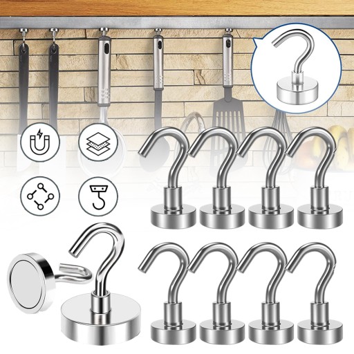 ♠️♠️【Opakowanie wartościowe】 opakowanie zawiera 10 srebrny haczyków magnetycznych o wymiarach 3,6 x 1,6 cm. Ten magnes z haczykami ma silny magnetyzm, a każdy haczyk magnetyczny może wytrzymać 8 kg. Ilość wystarcza, aby zaspokoić codzienne potrzeby.