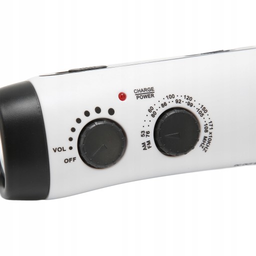 Praca latarki 5LED; włożony na SYRENĘ, alarm działa. Przesuń głośność z powrotem, aby dostroić głośność radia, a jednocześnie ustaw przełącznik częstotliwości na pozycję FM lub AM, obróć radio, aby dostroić, i wybierz żądaną melodię radia . Rozciągnij antenę paska na nadgarstek lub przesuń kierunek radia, możesz uzyskać dobry efekt radiowy. Włóż port USB DC lub port adaptera do IN, możesz naładować wewnętrzny akumulator, ogólnie można go w pełni naładować przez 3-4 godziny. Podłącz linię łączącą telefonu komórkowego lub produktu cyfrowego do OUT i jednocześnie obróć korbę ręczną, aby naładować telefon komórkowy lub produkt cyfrowy. Podczas ręcznego wytwarzania energii należy wyłączyć ładowany produkt. 3.5 Przy ładowaniu ręcznym musi wykonać 120-140 obrotów na minutę.