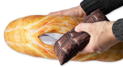 Grzejący Croissant to poduszka w kształcie gigantycznego rogala z kieszenią na wkład grzejący, który wygląda jak tabliczka czekolady. Ta oryginalna poduszka to prezent o wyjątkowo apetycznym wyglądzie. Wkład wypełniony jest pestkami wiśni, których przyjemne ciepło pozwoli Ci się odprężyć. Podgrzewa się go w mikrofalówce i można to robić wielokrotnie.