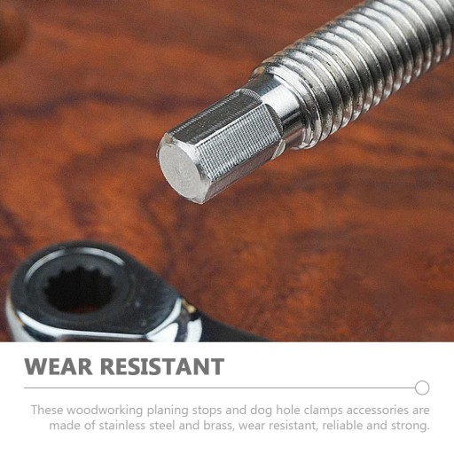 Te ograniczniki do strugania do obróbki drewna i akcesoria do zacisków otworów dla psów są wykonane ze stali nierdzewnej i mosiądzu, odporne na zużycie i mocne, do długotrwałego użytkowania. Poza tym zaciski do otworów dla psów zapewniają bezpieczny system mocowania, dzięki któremu obrabiany przedmiot pozostaje mocno na swoim miejscu.