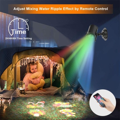 10. Funkcja: dynamiczne / statyczne / migające, automatyczne wyłączanie 2H / 4H / 6H, może zmienić film, różne tryby i kombinacje kolorów, zmiany kolorów (efekt pojedynczego światła wodnego / efekt świetlny pojedynczej projekcji / wzór wody + efekt świetlny projekcji), Poznaj wszystkich ludzi i sceny