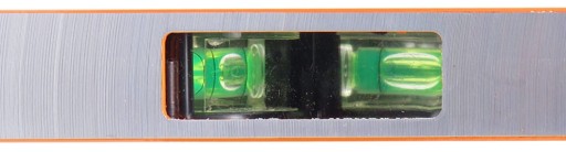 Poziomica wyposażona w 3 libelle ze szkła akrylowego lustro, wypełnione wzmagającym widoczność, zielonym płynem.