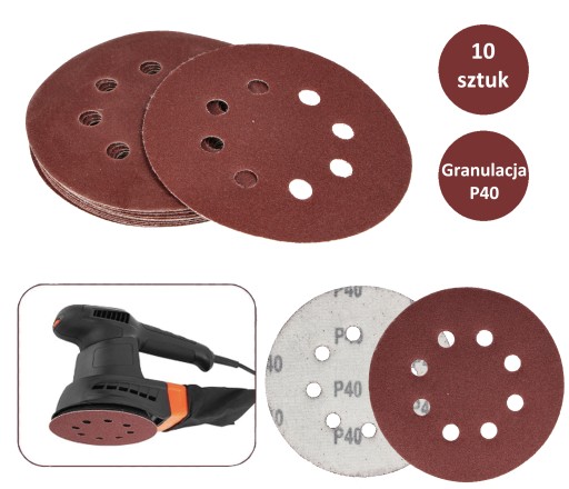 PAPIER ŚCIERNY 125 KRĄŻKI SAMOPRZYLEPNE NA RZEP Z OTWORAMI SZLIFIERKI P40