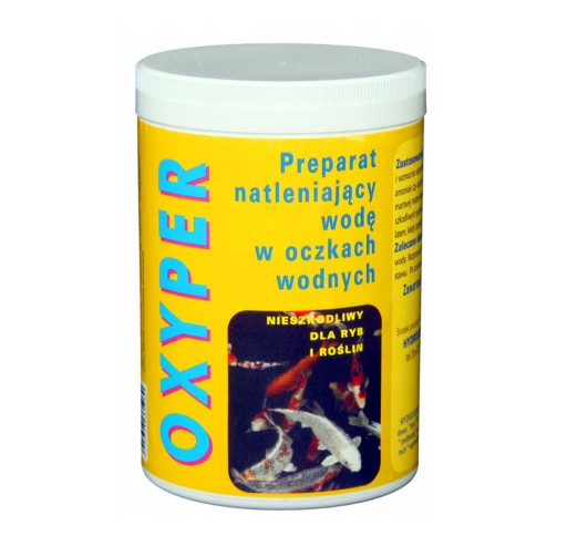 Preparat zwiększa zawartość tlenu w wodzie i wzmacnia odporność ryb na szkodliwe substancje takie jak amoniak czy azotany. Przyspiesza on również biodegradację martwej materii organicznej na dnie stawu i redukuje ilość szkodliwych gazów w wodzie. Zaleca się stosowanie Oxypera latem, kiedy zachodzi niebezpieczeństwo tzw. przyduchy w stawie. Rozprowadzić proszek równomiernie po całej powierzchni stawu. Po zastosowaniu środka zamknąć szczelnie pojemnik. Stosować się do instrukcji na opakowaniu.