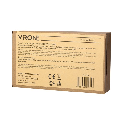 Oprawa oświetleniowa na szynę to element nowoczesnego systemu oświetlenia, której głównymi atutami są uniwersalność i funkcjonalizm. Model nadaje się do zamontowania na szynoprzewodach. Oprawa przystosowana jest do żarówki o maksymalnej mocy 35 W i trzonka GU10. Uniwersalny biały kolor doskonale pasuje do wielu wnętrz, np.: sypialni, przedpokoju czy pomieszczeń komercyjnych.
