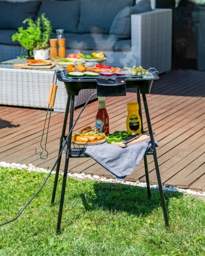 Dolna półka grilla to doskonałe miejsce na przechowywanie wszystkich niezbędnych akcesoriów grillowych. Produkt jest wyposażony w przewód o długości 1m, umożliwiający swobodne ustawienie grilla w bezpiecznej odległości od źródła energii. Po prostu skoncentruj się na grillowaniu i ciesz się doskonałymi potrawami na świeżym powietrzu!