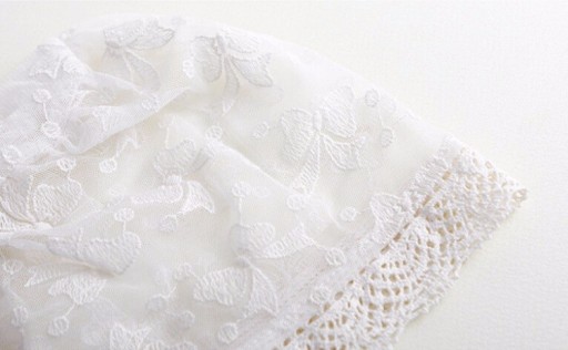 Piękna koronkowa-haftowana czapka-bonetka z kokardkami
