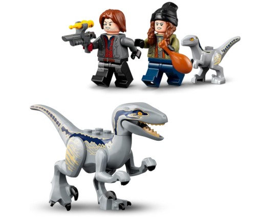 Zestaw dla sześciolatków i starszych dzieci zawiera również dwie minifigurki — Maisie i Rainna Delacourta z bronią ze środkiem usypiającym — oraz figurki dinozaurów Blue i Bety, które zachęcają dzieci do odgrywania ról i wymyślania własnych historii. W pudełku znajdują się proste instrukcje, dzięki którym nawet nowicjusze samodzielnie zbudują model. Ponadto zestaw świetnie łączy się z innymi zabawkami konstrukcyjnymi LEGO Jurassic World, dzięki czemu zabawa może być jeszcze lepsza.