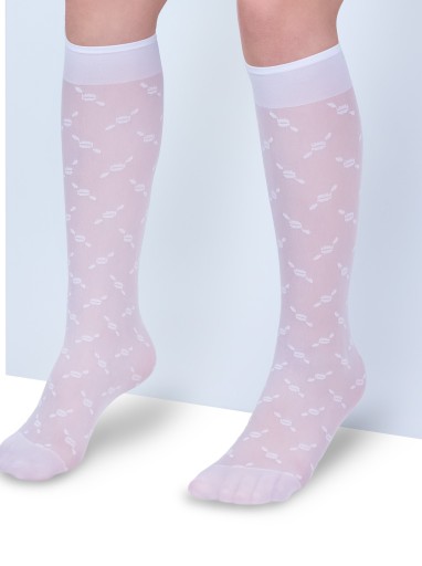 - Piękne fantazyjne dziewczęce podkolanówki w modny wzorek