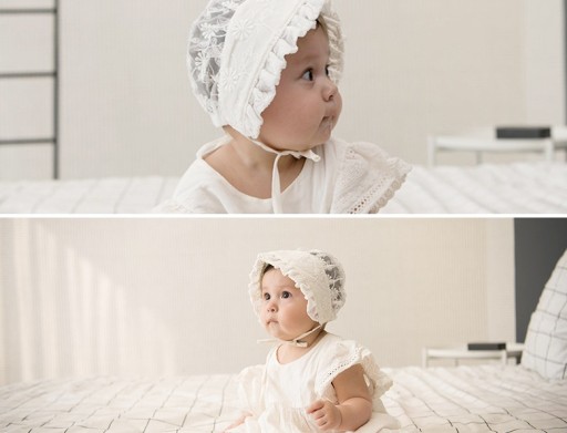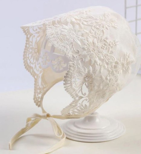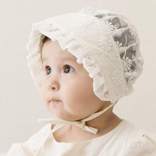 Piękna czapka-bonetka z haftowanymi kwiatami
