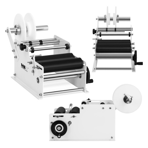 Etykieciarka marki MSW to ręczne urządzenie do naklejania etykiet np. na butelkach i słoikach oraz innych tego rodzaju opakowaniach. Sprawdzi się w każdej branży, która wytwarza dużo opakowanych produktów. Wydajność etykietowania wynosi 20-40 szt./min. Zależy ona od szybkości kręcenia korbą. Urządzenie nakleja z dokładnością +/- 1 mm. Pasuje do etykiet o szerokości 26-165 mm i długości 25-260 mm. Uniwersalność sprzętu sprawia, że nadaje się on do butelek i innych opakowań o średnicy 15-100 mm. Średnica wewnętrzna rolki z etykietą wynosi 70 mm, a zewnętrzna 200 mm. Stal konstrukcyjna węglowa (Q235) zapewnia etykieciarce dużą wytrzymałość.