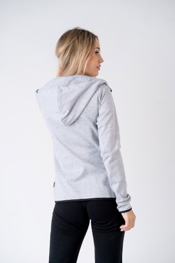 Prezentowana odzież sportowa stanowi nietuzinkowe rozwiązanie, a wszystko to za sprawą raglanowych rękawów, które wszyte zostały w taki sposób, by sięgać aż do linii dekoltu, w rezultacie dając złudzenie optyczne, że rękaw stanowi całość z częścią barkową. Praktyczny kaptur pozwoli na osłonienie się przez wiatrem, a troczki umożliwią dopasowanie jego wielkości do potrzeb. Użyteczne kieszenie, zlokalizowane symetrycznie po dwóch stronach oferowanej bluzy damskiej, dadzą schronienie nie tylko dla zmarzniętych rąk, ale również posłużą jako miejsce, gdzie będziesz mogła schować drobne rzeczy niezbędne podczas długich spacerów, wizyty w siłowni czy pieszych wycieczek. Całość wyposażona została w zamek błyskawiczny.